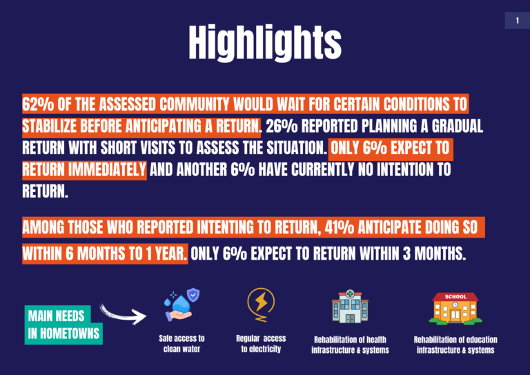 In light of recent developments in Syria, Dünya Doktorları (DDD) conducted an assessment to explore the intentions of internally displaced populations (IDPs) in Northwest Syria regarding their potential return to their hometowns. Building on a previous study conducted by DDD , which gathered insights from key informants such as camp managers and local authorities, this time the assessment directly consults IDPs to validate and expand upon those findings.