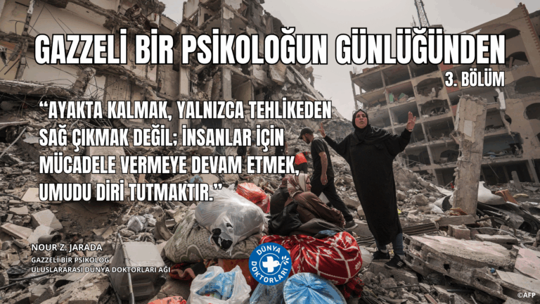 Bu savaş, sahip olduğumu bilmediğim güçleri de ortaya çıkardı. İnsanın zulüm karşısında dayanma ve sabretme gücünün ne kadar sınırsız olduğunu, kendi yasını tutarken başkalarına nasıl el uzatabildiğini, dayanışma içinde olabildiğini keşfettim. Sevdiklerimi teselli etmeyi, dostlarıma veda ederken bile öğrenebildim. Meslektaşlarımın her gün hayatları pahasına başka insanlar için nasıl mücadele ettiklerini gördüm. Açlığa, korkuya ve yaşadıkları korkunç vahşete rağmen enkazdan aldıkları iki taşı birleştirip hâlâ oyun kurabilen çocuklara tanıklık ettim. Ayakta kalmak, yalnızca tehlikeden sağ çıkmak değil; insanlar için mücadele vermeye devam etmek, umudu diri tutmak ve ne pahasına olursa olsun insanlık onurunu savunabilmektir.