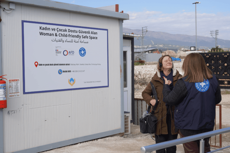 Fransız Kalkınma Ajansı’nın desteklediği Dünya Doktorları, depremi takip eden hemen ilk haftalarda Hatay’ın Antakya ilçesine bağlı Odabaşı mahallesinde kadın ve çocuklara yönelik bir merkez açtı. Burada doktorlar, jinekolog, psikologlar, klinik psikologlar ve sosyal çalışmacılar sürekli olarak randevu alıyor, depremden etkilenen insanlara destek sağlıyor.