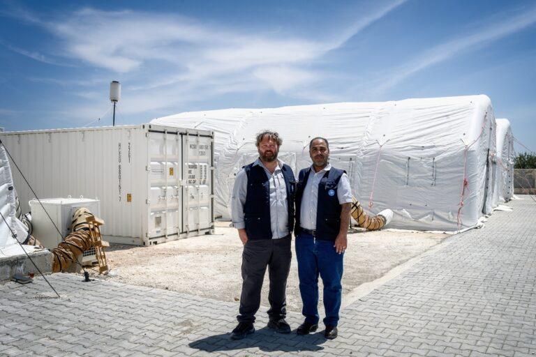 Fakat önemli olan, aynı zamanda yüzden fazla sağlık çalışanının bu bölgeye taşınmasını sağlamak. Hastane, depremzedelere sağlık hizmeti verebilmek için kuruldu. Hakan Bilgin, tüm kuzey ve kuzeydoğu Suriye bölgesini etkisi altına alan mülteci kriziyle birlikte yapılan şeyin, daha iyi bir tıbbi bakım sağlayabilmek için hastaneleri bir araya getirmek olduğunu belirtiyor.